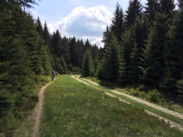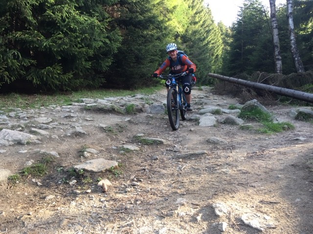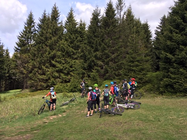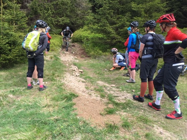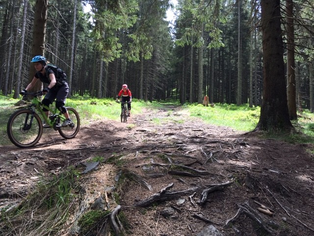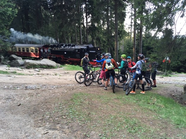 Am Samstag waren wir mit den Mädels aus Dresden unterwegs und haben in Schierke oder besser auf den Trails um Schierke herum, einen tollen privaten Fahrtechnikkurs durchgeführt. Die beiden Guides und Trainer Jan und Stefan hatten alle Hände und Lenker voll zu tun, die Bande in Schach zu halten. Das Niveau war hoch, die Motivation noch höher und so standen neben einigen Grundlagentechniken vorwiegend techisch anspruchsvolle Trails auf dem Programm. Die verblockten Stiege und ausgewaschenen Wege konnten die Mädels dabei nicht schrecken und so klapperten wir nach und nach einen schönen Trails nach dem anderen ab, führten Sektionstraining durch und analysierten die möglichen, zu fahrenden Linien. Das Wetter war ebenso perfekt wie die tollen Strecken und in unserer Mittagspause beim Brockenwirt knallte die Sonne ganz ordentlich herunter. Daher flüchteten wir danach schnell wieder in den kühlen Fichtenwald um erneut mit unseren Bikes anzugreifen. Es war ein super Tag, danke an alle die dabei waren.