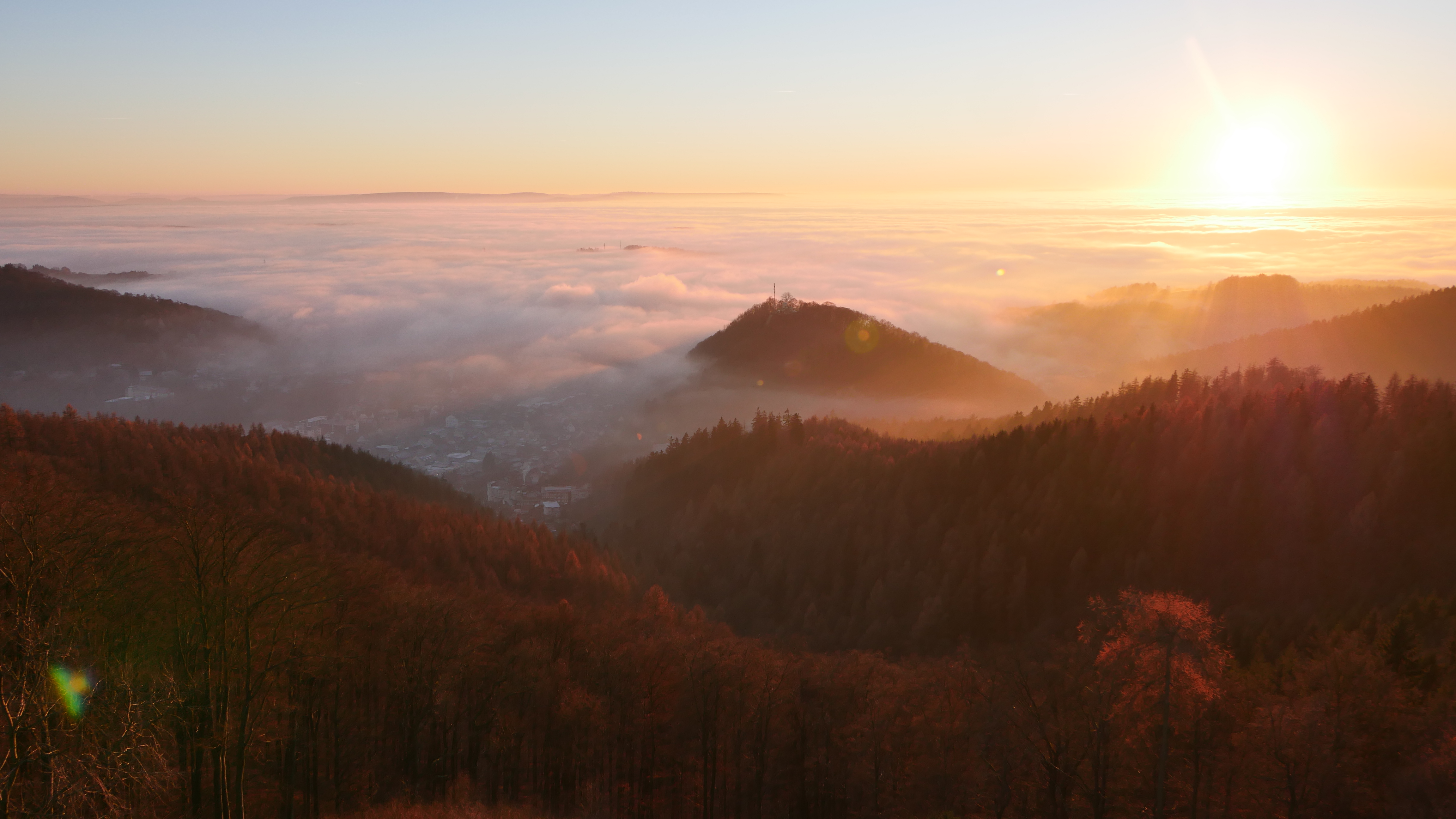 Das letzte Licht erhellt die Bäume und taucht die Stadt Bad Lauterberg in eine heimliche Stimmung.
