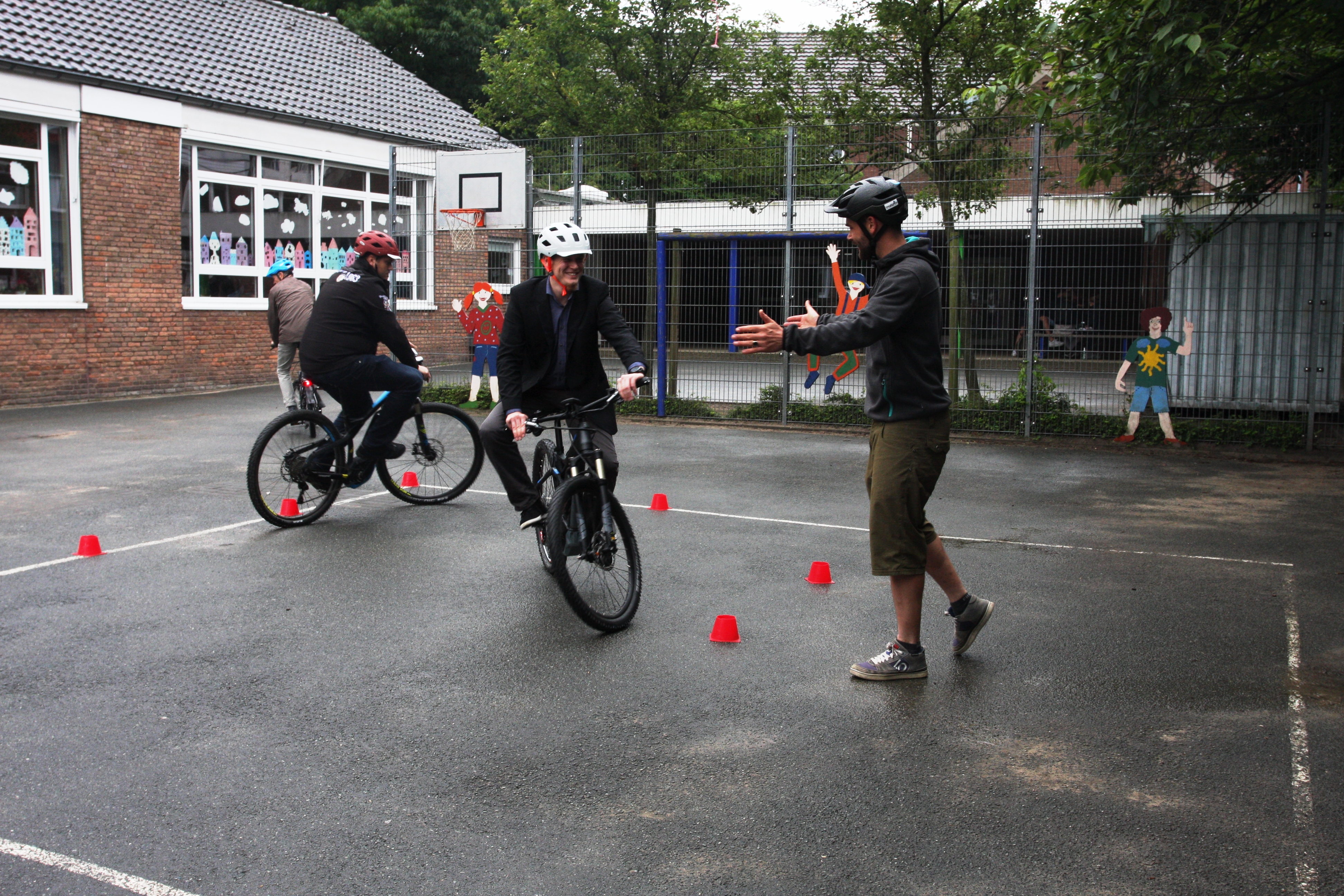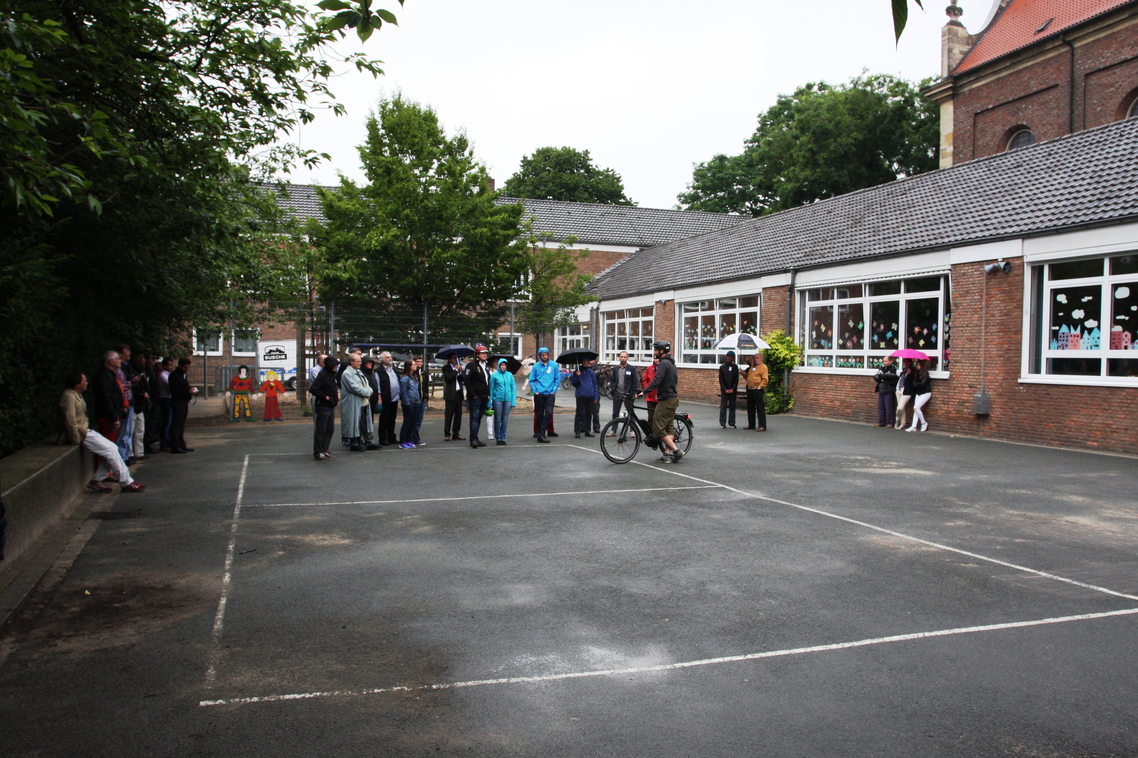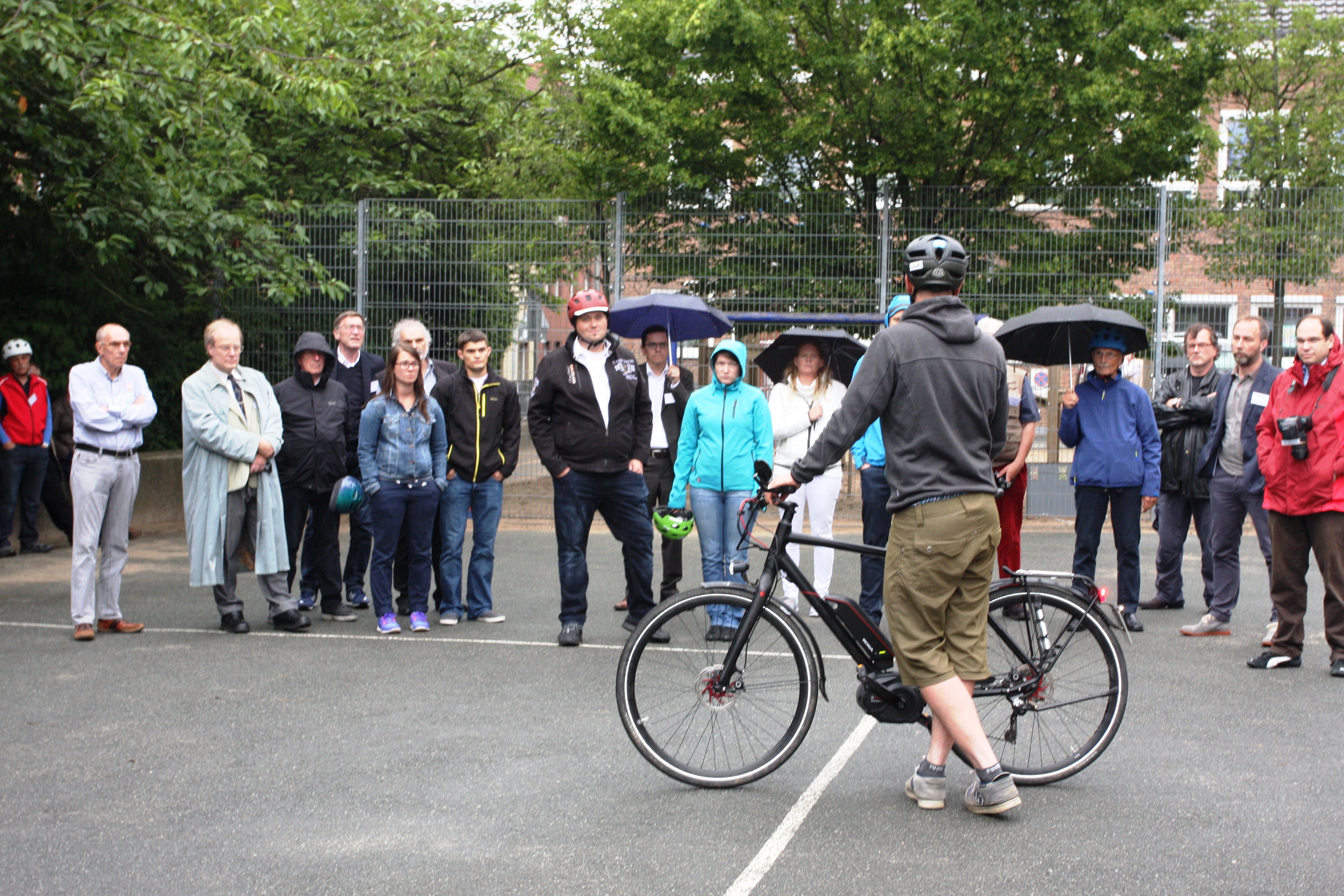 Im Rahmen des DVR-Presseseminars (Deutscher Verkehrssicherheitsrat) vom 27. und 28. Juni 2016 in Münster veranstalteten wir ein Fahrsicherheitstraining und absolvierten Fahrtechnikübungen für Pedelecs und E-Bikes. Darüber hinaus gab Trailtech Geschäftsführer Jan Zander wichtige Tipps und Informationen zum Thema. Mit rund 40 geladenen Journalisten ging es gegen 18.00 Uhr auf dem Gelände der Aegidischule los und Dank eines kurzweiligen und abwechslungsreichen Programms flog die Zeit nur so so dahin. Am Ende hatten alle viele Tipps, gute Eindrücke und eine Menge Informationen zum Thema gesammelt und während wir noch die Bikes in den Anhänger luden, fing es pünktlich zum Feierabend an zu regen. Danke an alle die dabei waren.