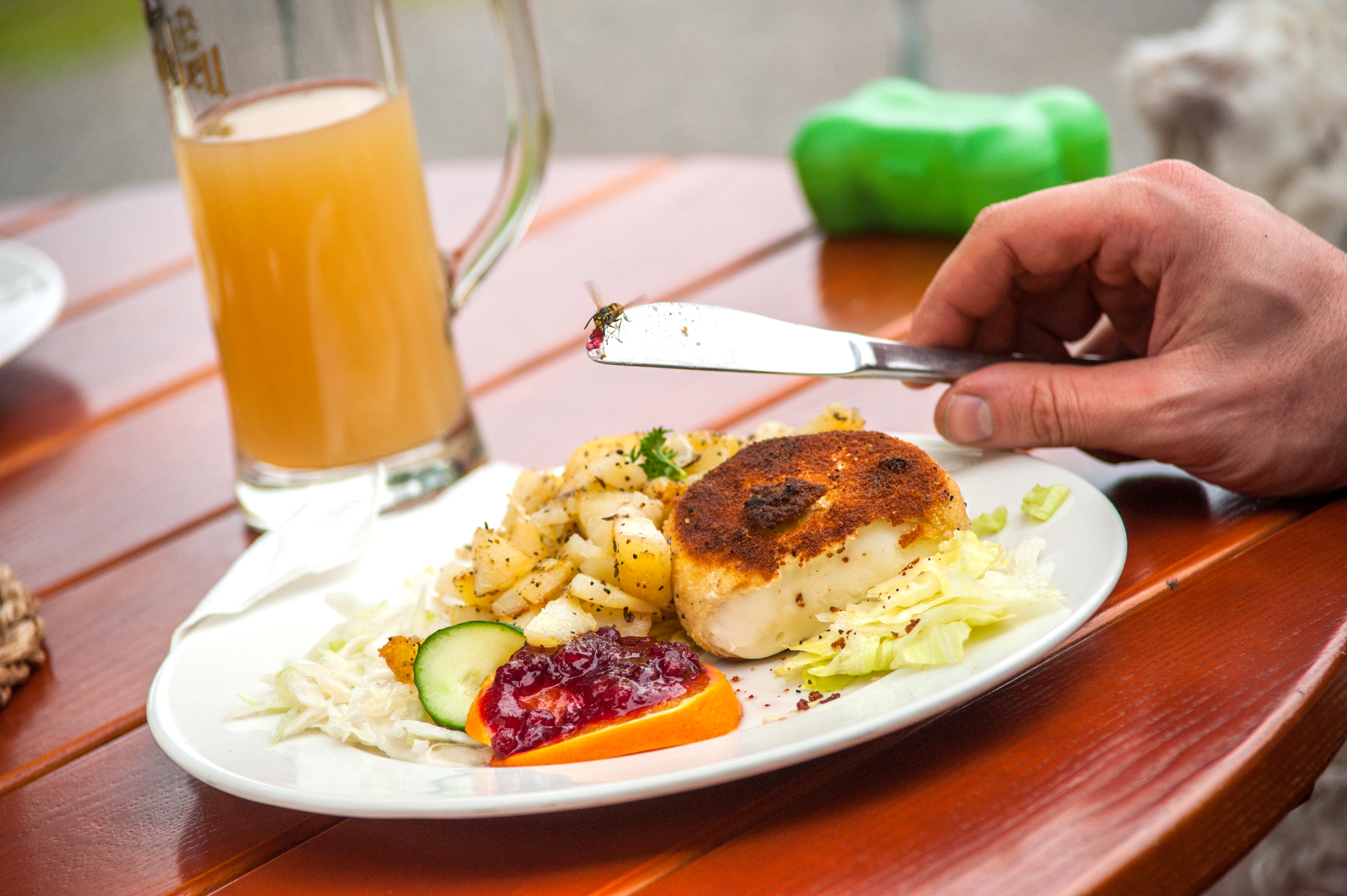 Fast alles auf der Karte stammt vom Hof oder ist aus regionalem Anbau. Mit einer eigenen Hofkäserei und Ferienwohnungen ein perfekter Ort um zu entspannen. Wir bestellen einige Leckereien von der kleinen aber feinen Karte und genießen die Sonnenstrahlen auf der Terrasse. Stefans Geheimtipp ist das Eis auf Ziegenmilchbasis aus dem Hofladen und der Trail von hier oben. Wir bestellen je zwei Kugeln und lassen uns vorschwärmen, was uns auf dem Trail erwartet.