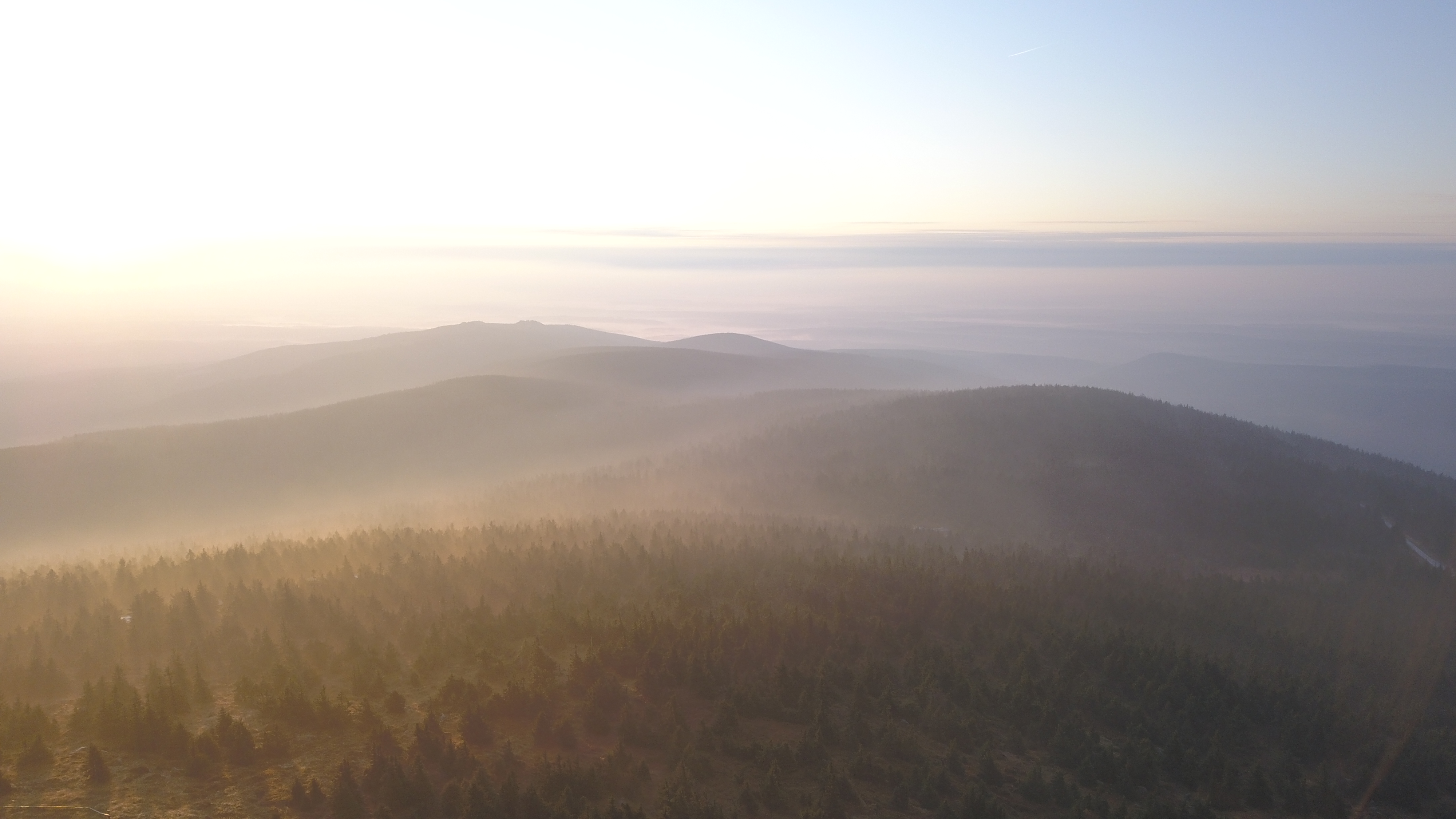 Als wir auf dem Gipfel ankamen, hatte der Nebel die Landschaft rundherum noch fest im Griff und nur langsam hellte sich der Horizont im Osten auf und tauchte die Umgebung in goldenes Licht. Was eine super Stimmung. Wir bekommen jetzt richtig Lust auf einen tollen, hammerharzen Mountainbike Herbst :)