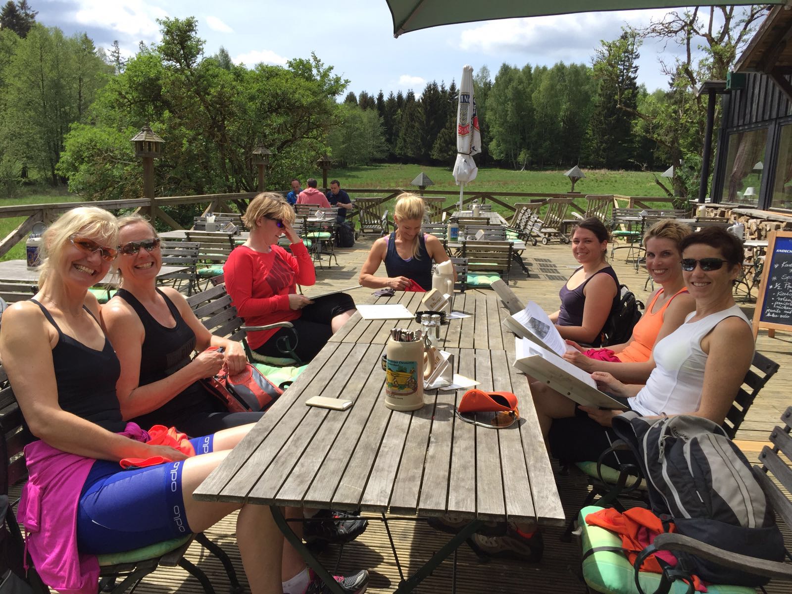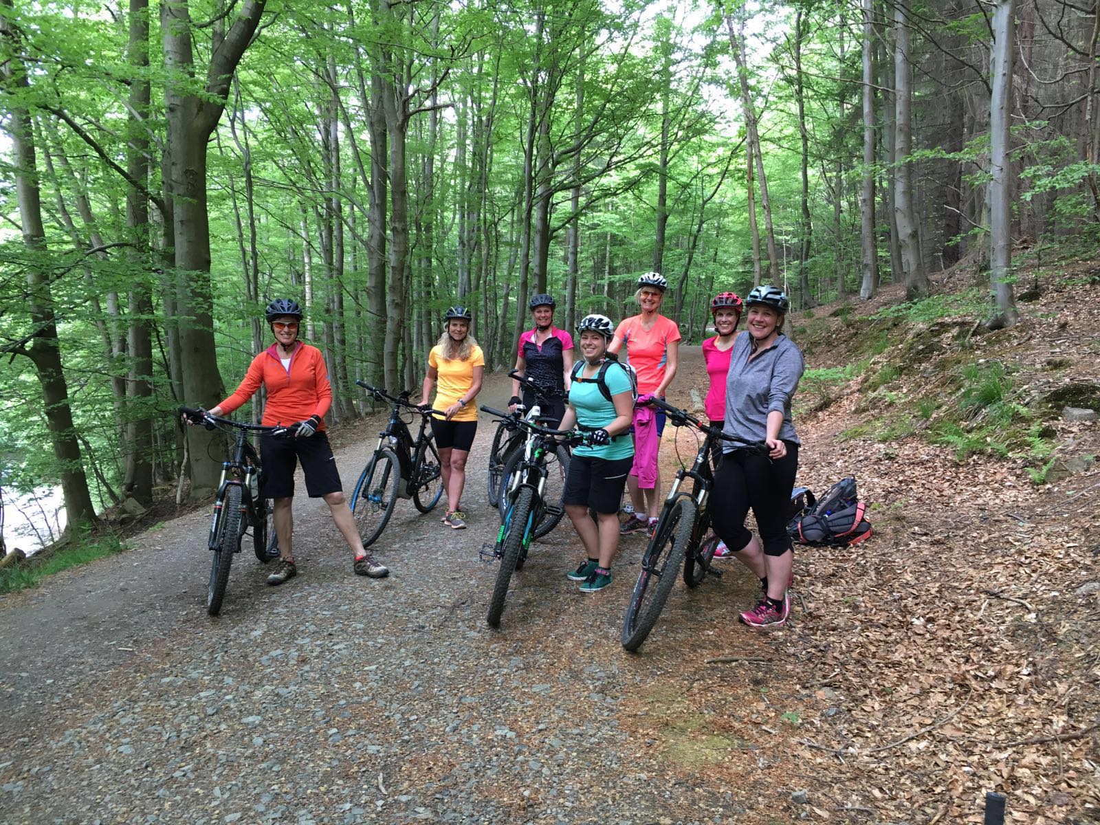 Am 21.05.2016 stand der erste LADIES ONLY Fahrtechnikkurs in Bad Harzburg auf dem Programm und 8 entspannte „Mädels“ trafen sich morgens dafür mit unserer Trainerin Melanie. Das Wetter spielte perfekt mit und die Trails am Nordrand des Harz waren in bestem Zustand. Frisches Frühlingsgrün sorgt im Wald für eine perfekte Lernatmosphäre, die Teilnehmerinnen waren motiviert und hatten eine Menge Spaß mit den ersten Grundlagenübungen. Von Station zu Station tastete die Gruppe sich durch das „Kalte Tal“ den Berg hinauf und der erste Trainingsblock am Vormittag verging wie im Flug bzw. wie im Flow. Mittagspause gabe es wie gewohnt bei unseren Freunden vom Molkenhaus und frisch gestärkt ging es danach in die zweite Runde und auf schönene Trails in Richtung Eckertal. Hier zeigte sich bereits der erste Lernerfolg und der ein oder anderen technisch anspruchsvollen Sektion auf den Wegen wurde kontrolliert der Schrecken genommen. Als krönender Abschluss stand dann am tagesende noch die Abfahrt zurück nach Bad Harzburg an und mit der zuästzlich gewonnenen Fahrsicherheit machte diese auch doppelt Spaß. Danke an alle Teilnehmerinnen für den tollen Tag und natürlich auch unserer Trainerin Melanie für die super Betreuung und lehrreichen Trainingseinheiten.