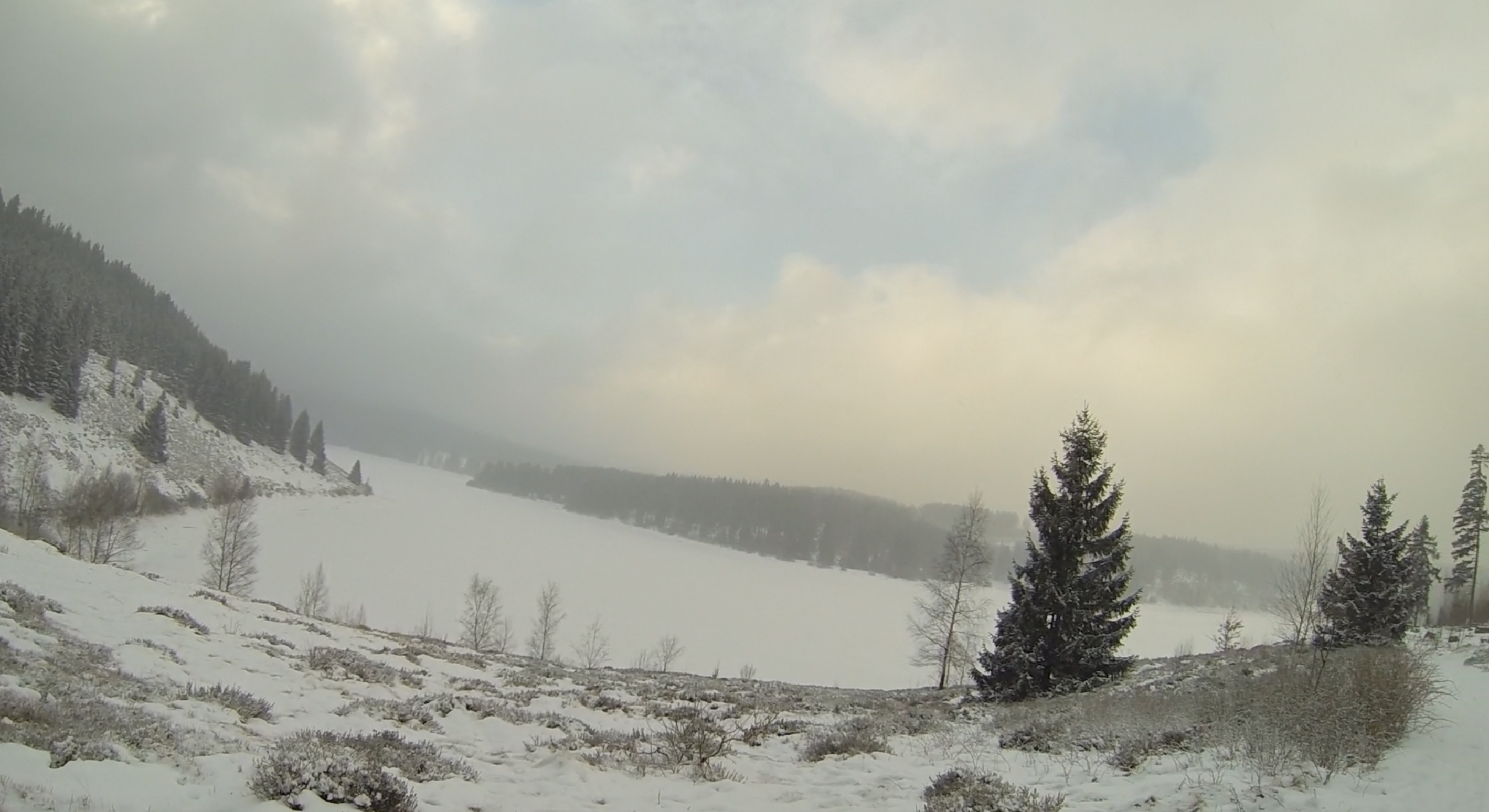 Der Eckerstausee komplett unter Eis. Sehr schöne winterliche Stimmung im Harz aktuell.
