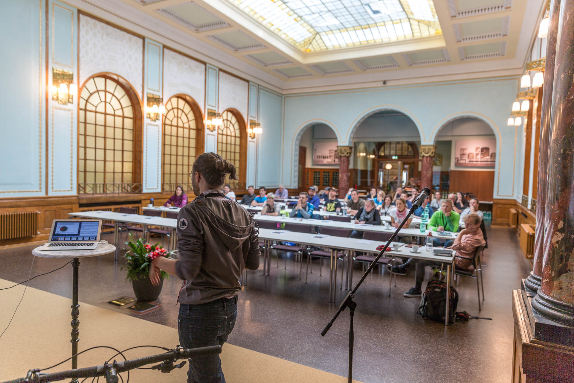 „Die zweite deutsche Mountainbike-Guidingtagung fand heute zum Auftakt der Zukunftswerkstatt des Mountainbike Tourismusforum Deutschland in Bad Wildbad statt. Knapp 50 Teilnehmer aus fünf Ländern nahmen an der Tagung teil und arbeiteten unter dem Motto „Wir sind es Wert“ an einer weiteren Professonialisierung der MTB-Guiding-Branche. Tilman Sobeck und Norman Bielig, Mitglieder des Vorstandes des Mountainbike Tourismusforum Deutschland führten durch das Programm im historischen König-Karl-Bad-Forum.