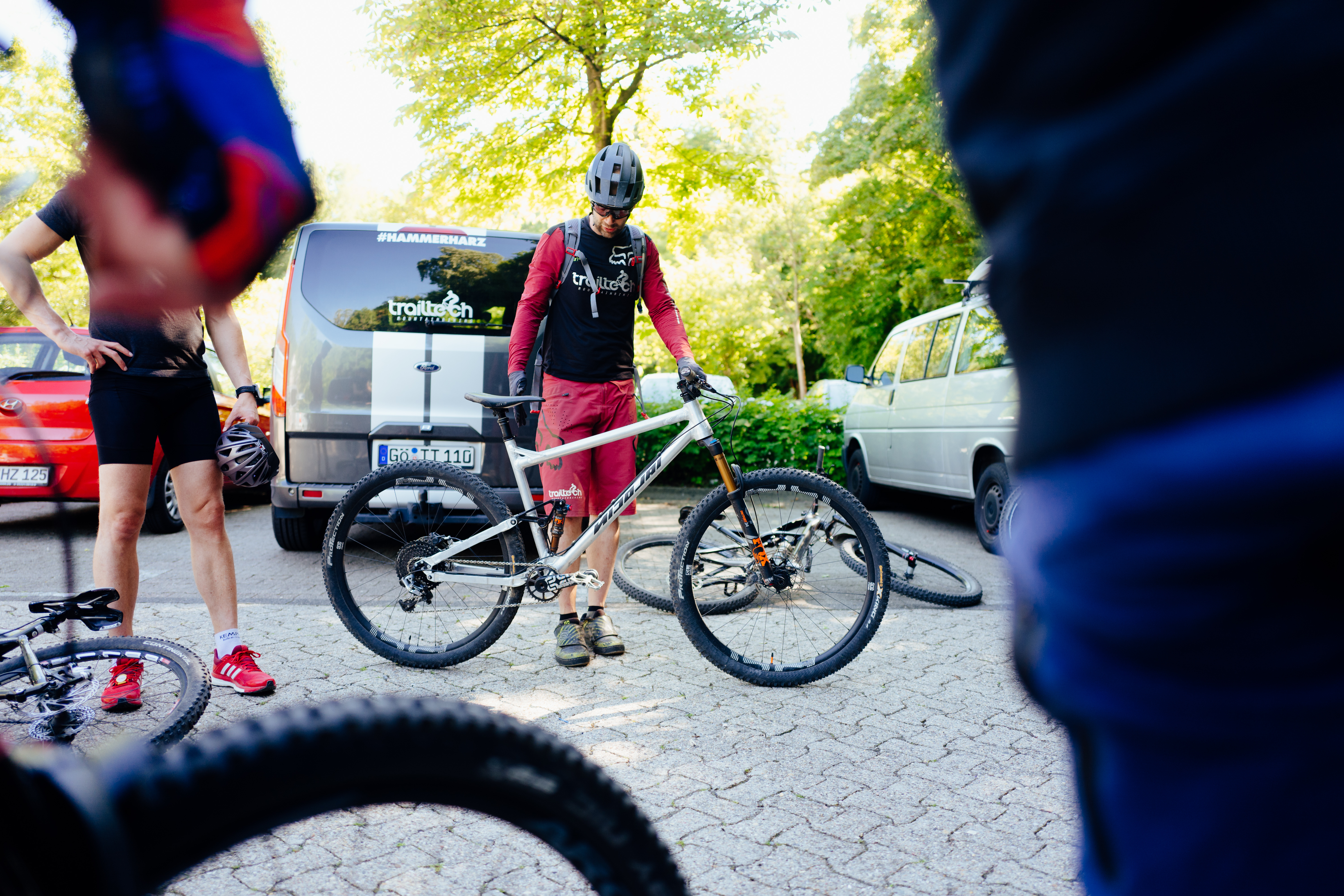 Unsere LEVEL 1 Basis und LEVEL 2 Aufbau Fahrtechnikkurse sind sowohl für Mountainbike Einsteiger als auch für etwas fortgeschrittene Biker geeignet, die z.B. ihre Fahrtechnik von Grund auf sauber und unter fachkundiger Anleitung erlernen wollen. Am vergangenen Wochenende 30.06./ 01.07.2018 war es dann mal wieder soweit und wir trafen uns in Bad Harzburg mit rund 18 motivierten Teilnehmern und unseren Trainern auf dem Parkplatz. Nach einem kurzen Briefing ging es zum ersten Punkt des Tages, dem Sicherheitscheck und der Einstellung der Bikes der Teilnehmer. Hier haben unsere Guides und Trainer sicher auch für Euch einige wichtige Tipps parat, wenn es darum geht sein Cockpit, die Reifen und vor allem die Federelemente richtig einzustellen. Danach rollten wir auch schon ins Gelände und konzentrierten uns auf die ersten Aufwärmspielchen, Gleichgewichtsübungen und Tipps zur Radgewöhnung und Kontrolle. Von Sektion zu Sektion kletterten wir dann im weiteren Verlauf des Kurses den Berg hinauf und machten zur Mittagszeit an den Rabenklippen halt um uns kurz zu stärken. Das Wetter war absolut genial und wir genossen die Sonne und die fantastische Aussicht über die Harzer Wälder und Berge. Nach der Pause ging es dann etwas dynamischer mit den ersten Trails und anspruchsvolleren Passagen zur Sache, wobei die Sicheheit natürlich auch hier an erster Stelle stand. Auf der letzten Abfahrt des Tages zurück nach Bad Harzburg konnten die Teilnehmer dann nochmal alles geben und den wunderschönen Trail so richtig genießen. Während des Abschluss-Feedbacks hatten dann auch alle Teilnehmer ein fettes Grinsen im Gesicht. Danke an alle die dabei waren, unseren Trainern und natürlich dem Fotografen Patrick Lipke, der die super tollen Fotos gemacht hat. Schaut mal bei ihm HIER vorbei. #HAMMERHARZ