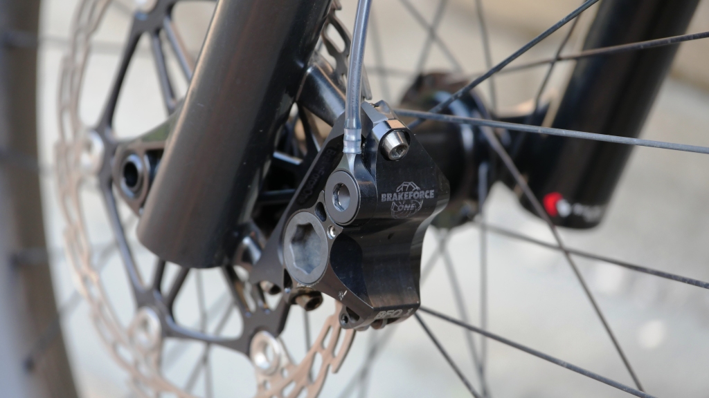 Unser Guide Stefan wurde im vergangenen Jahr vom Fatbike Virus infiziert und fährt sein dickes Gerät wie einige andere Guides von TRAILTECH aus unserem Team, mittlerweile auch im Sommer und abseits von Schnee und Eis. Das „dicke Gerät“ ist in diesem Fall ein NICOLAI Argon FAT und wurde von Stefan auf extremen aber immer noch haltbaren Leichtbau getrimmt. Das Bike ist komplett in mattschwarz/ schwarz gehalten und sieht aus wie ein Trail-Stealth -Bomber! Bei einer Körpergröße von rund 190cm wählte Stefan die Rahmengröße L mit Standard Geometrie. Einzige Modifikation ist das ION16 Gusset am Steuerrohr und das 31.6mm Sattelrohr wird bei den großen Rahmengrößen, für eine höhere Stabilität durch ein 30.9mm ersetzt.Die verbauten Komponenten setzen sich wie folgt zusammen: einer ROCK SHOX Bluto an der Front, welche von einem TUNE Steuersatz in Zaum gehalten wird, einem TUNE/ Carbon Laufradsatz mit SCHWALBE Jumbo Jim Bereifung die tubeless gefahren werden, der aktuell wohl leichtesten Fatbike Kurbel, einer RACE FACE Next SL, kombiniert mit einem ovalen Bionicon Kettenblatt, RACE FACE Carbon Lenker + EASTON Haven Vorbau, einer VECNUM moveloc remote Sattelstütze mit TUNE Sattel, XTR Klickpedalen und kompletter SRAM XX1 Schaltgruppe.