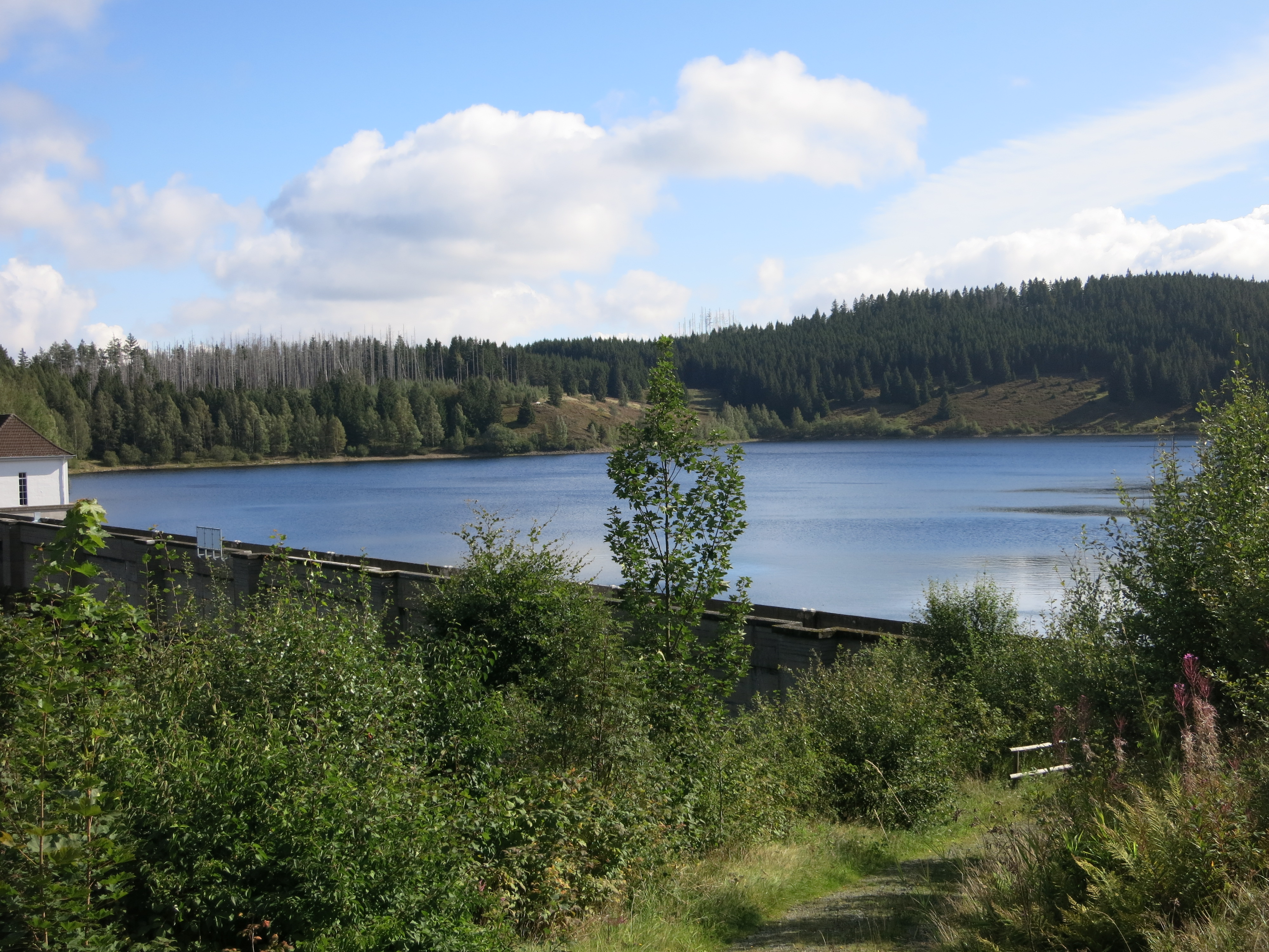 An der Eckertalsperre mit dem gleichnamigen Stausee im Hintergrund.