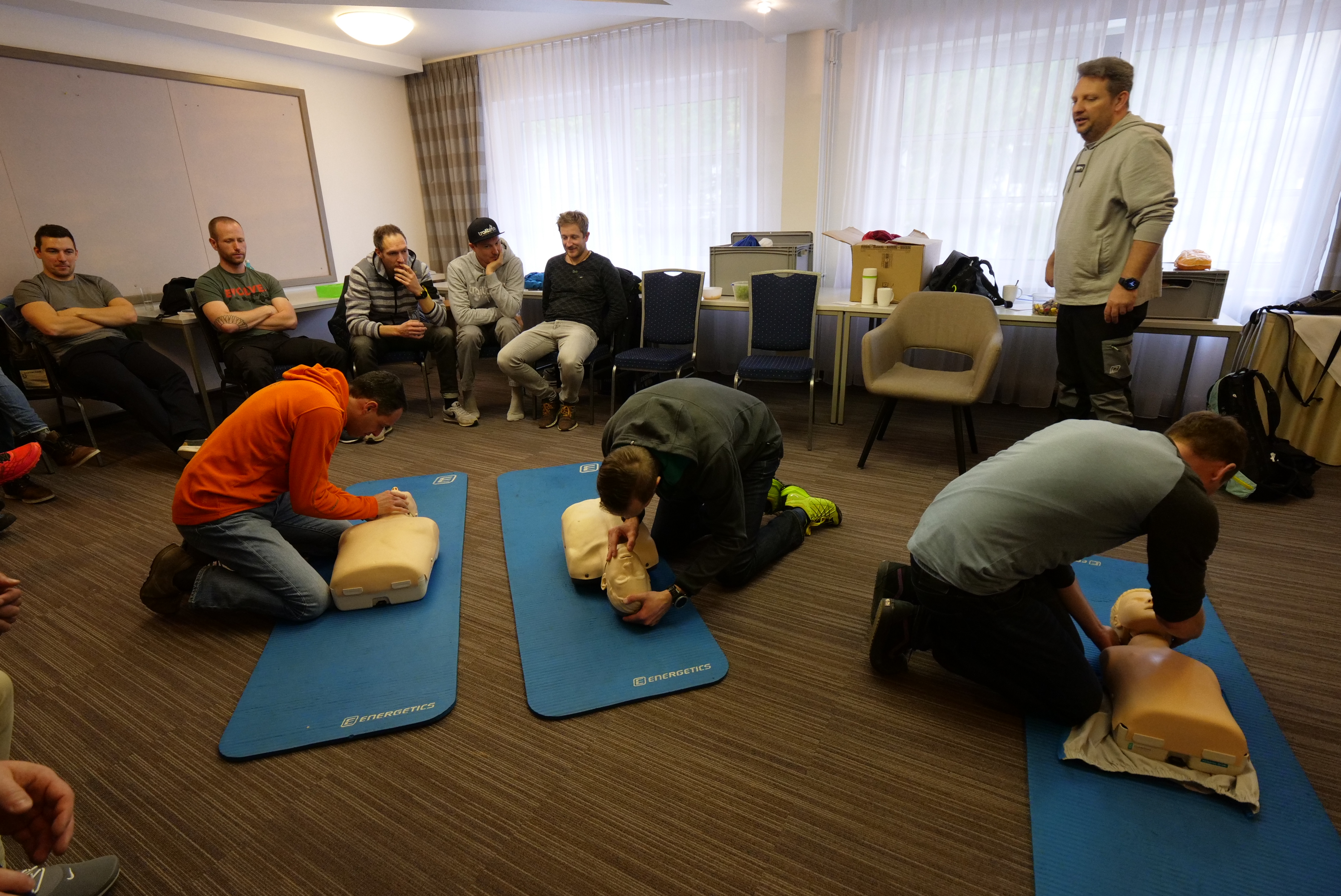 Wie zu Beginn einer jeden Bikesaison, führen wir zusammen mit unserem Team unsere umfangreiche Erste-Hilfe Fortbildung im Harz durch. Der Schwerpunkt „Outdoor“ deckt dabei viele wichtige Punkte und Übugnen ab, welche perfekt in unseren Aufgabenbereich passen. Ausbilder und Referent dieser Veranstaltugn ist der Leiter der Bergwacht Braunlage und Inhaber der ERSTE HILFE SCHULE Harz, Marcus Backes. Mit seinem umfangreichen Erfahrungsschatz aus den unterschiedlichsten Bereichen der Rettung, Erstversorgung und Ersten Hilfe, kann Marcus viele wichtige Infos und Tipps aus der Praxis an uns weitergeben und authentisch und praxisorientiert vermitteln. Da wir uns im Rahmen unserer Kurse, Touren und Events im Harz oftmals auch tief in den Wäldern und Tälern, fernab von Zivilisation befinden, ist es umso wichtiger sich auf den Fall der Fälle vorzubereiten und notfalls richtig und effektiv zu handeln. Klassische Erste-Hilfe Inhalte wie Reanimation, Verbinden, Stabilisierung und Sicherung von Verletzten usw. sind natürlich ebenfalls Bestandteil der Ausbildung.