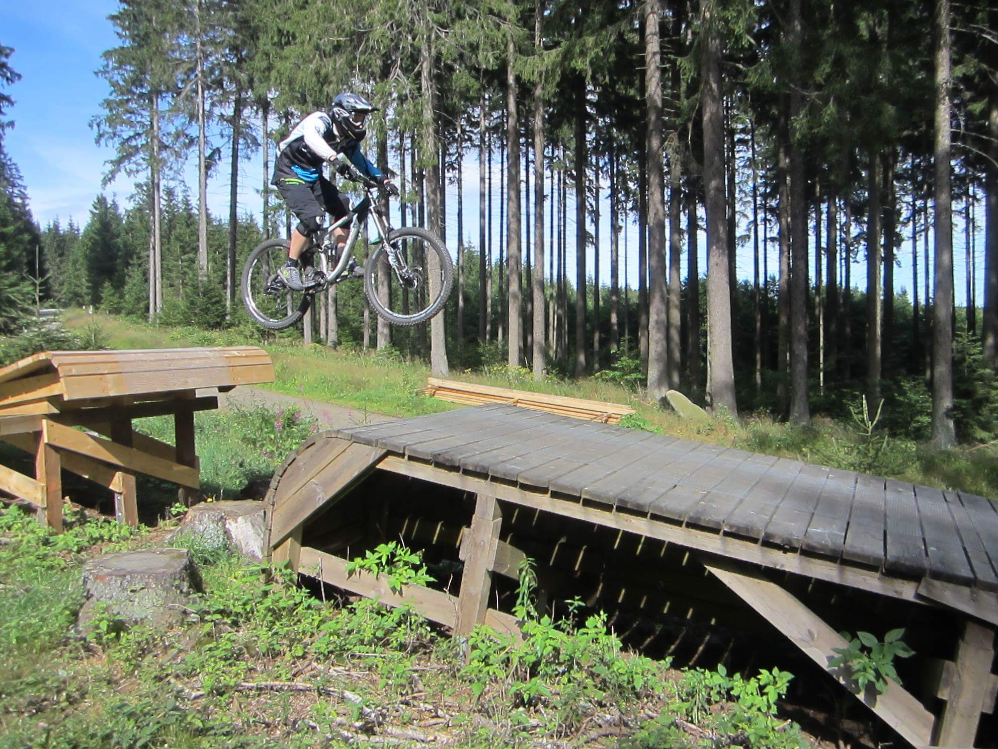 Um Euch fit für eben diese Situationen zu machen, bieten wir Euch ein entsprechendes Training an. Hier erweitert ihr Euren Erfahrungsschatz und lernt sicher und kontrolliert, wie ihr spontan auf diese Sektionen reagieren könnt. Das Training und die Tipps dreht sich nicht um das krampfhafte Überwinden von Sprüngen und Stunts, vielmehr bekommt Ihr wichtige Tipps und Techniken an die Hand die Ihr im Gelände an ganz normalen Situationen anwenden könnt, wie sie auch auf kniffligen Endurotrails oder eben im Bike- / Trailpark auftauchen können. Dies sind die ersten Droptechniken und Sprungtechniken für Gap-Sprünge über Tables und Doubles. Wie weit und hoch man gehen will entscheidet natürlich jeder Teilnehmer selber. Wir leiten Euch nur an und unterstützen Euch mit wertvollem Feedback während der Übungen.