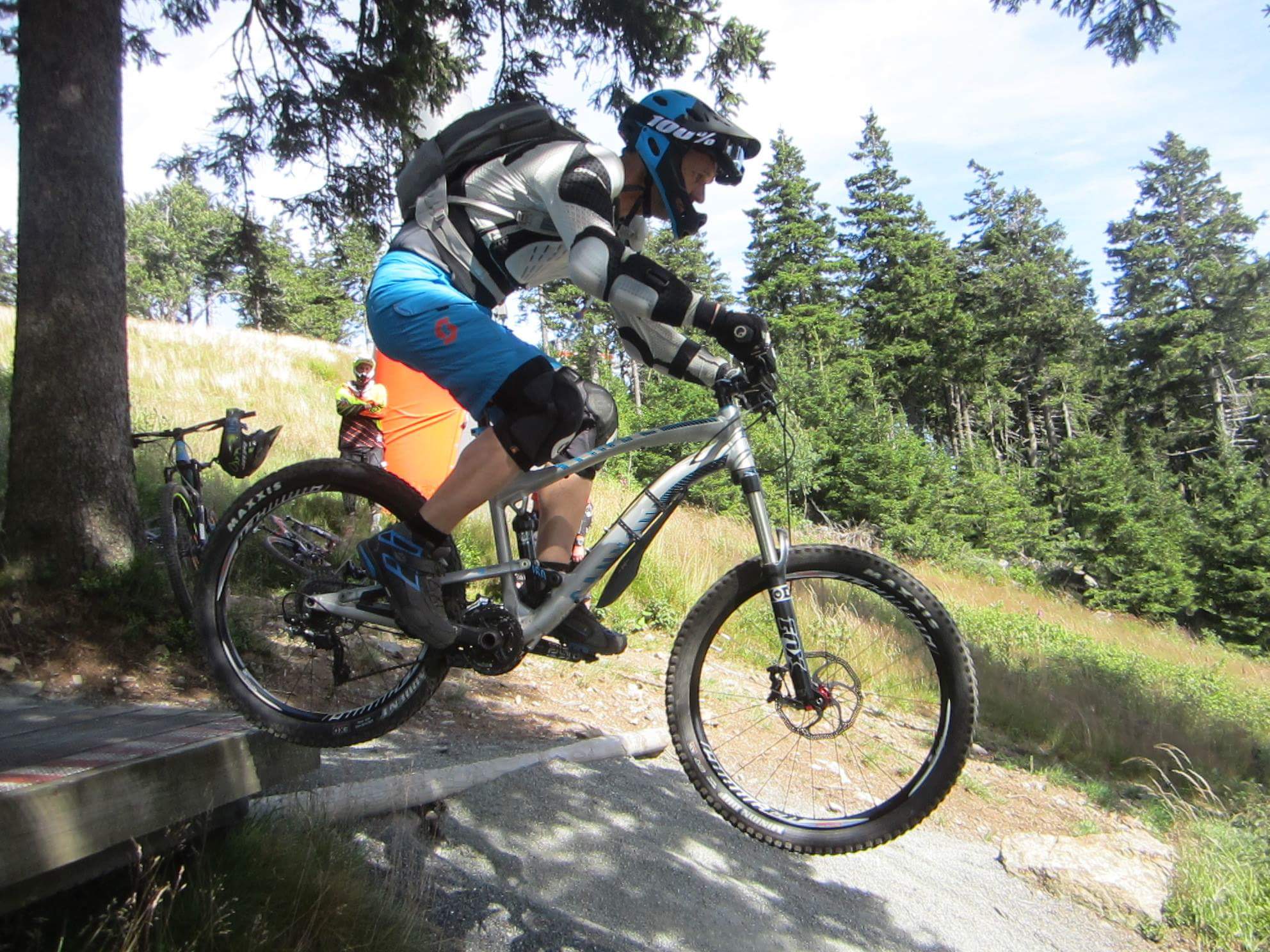 Viele unserer Teilnehmer und Teilnehmerinnen sind bereits sicher in technischem Gelände und auf anspruchsvollen Trails unterwegs und fahren teilweise auch regelmäßig im Bikepark. Steilstücke, Absätze und Anliegerkurven bereiten ihnen keine Probleme und auch verblocktes Gelände lässt sich schon flüssig fahren. Doch wenn plötzlich auf dem Trail oder der Downhillstrecke ein Sprung oder eine höhere Kante auftaucht, ist es schnell vorbei mit dem Fahrfluss und man traut sich nicht zu diese Schikane in Angriff zu nehmen und die Passage zu überspringen bzw. zu droppen.