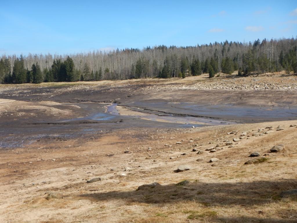 Am Oderteich im Hochharz. Wenig Wasser aktuell.